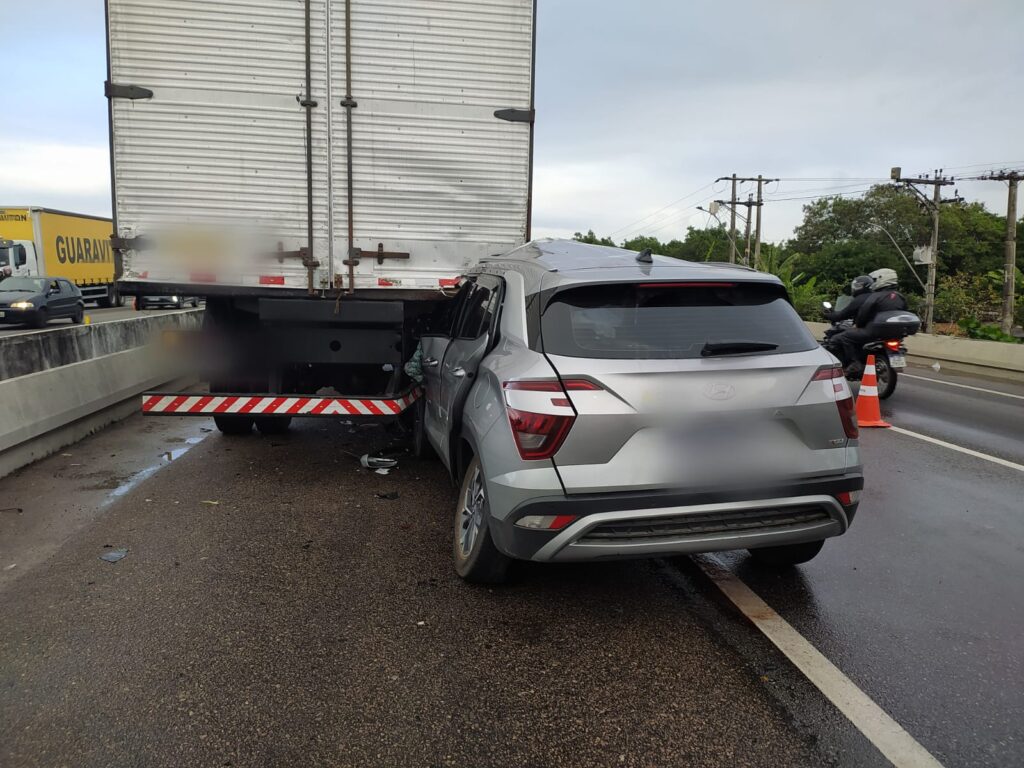 O acidente aconteceu por volta das 6h30. O carro, modelo Hyundai Creta, colidiu com a parte traseira do caminhão. Um dos ocupantes, um homem adulto, morreu na hora. No entanto, segundo o Corpo de Bombeiros, ainda não há informações sobre a identidade da vítima.