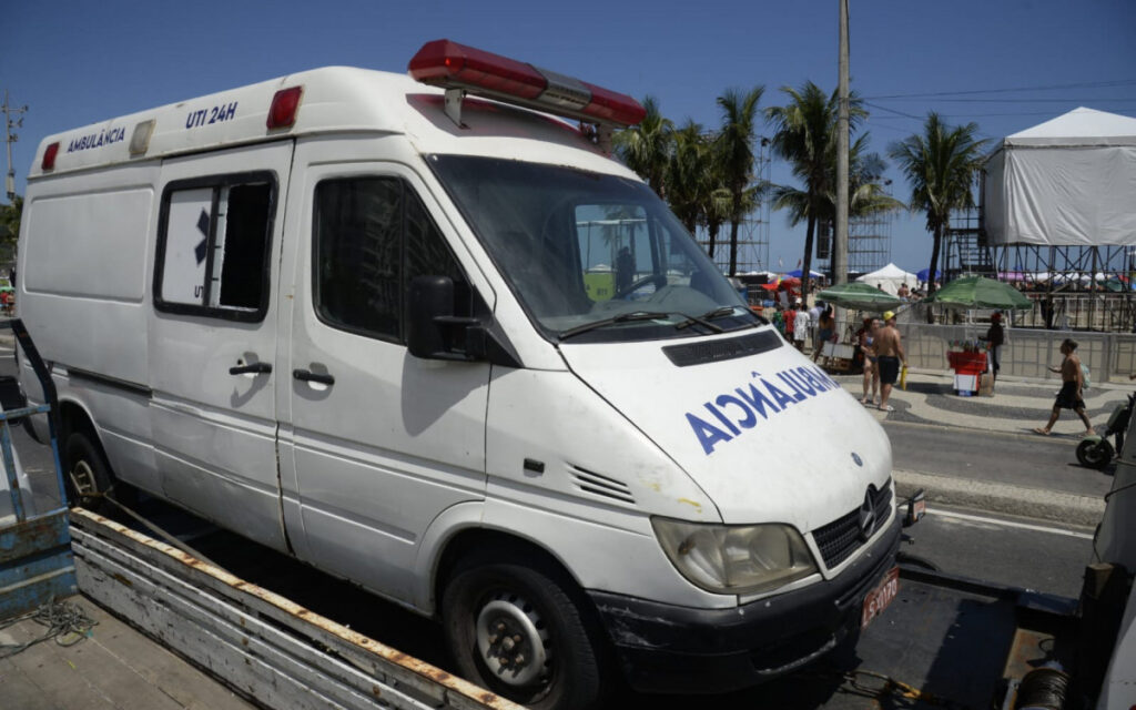 Uma ambulância utilizada como depósito irregular de bebidas e móveis foi rebocada nesta terça-feira (31), em Copacabana, na Zona Sul do Rio de Janeiro.