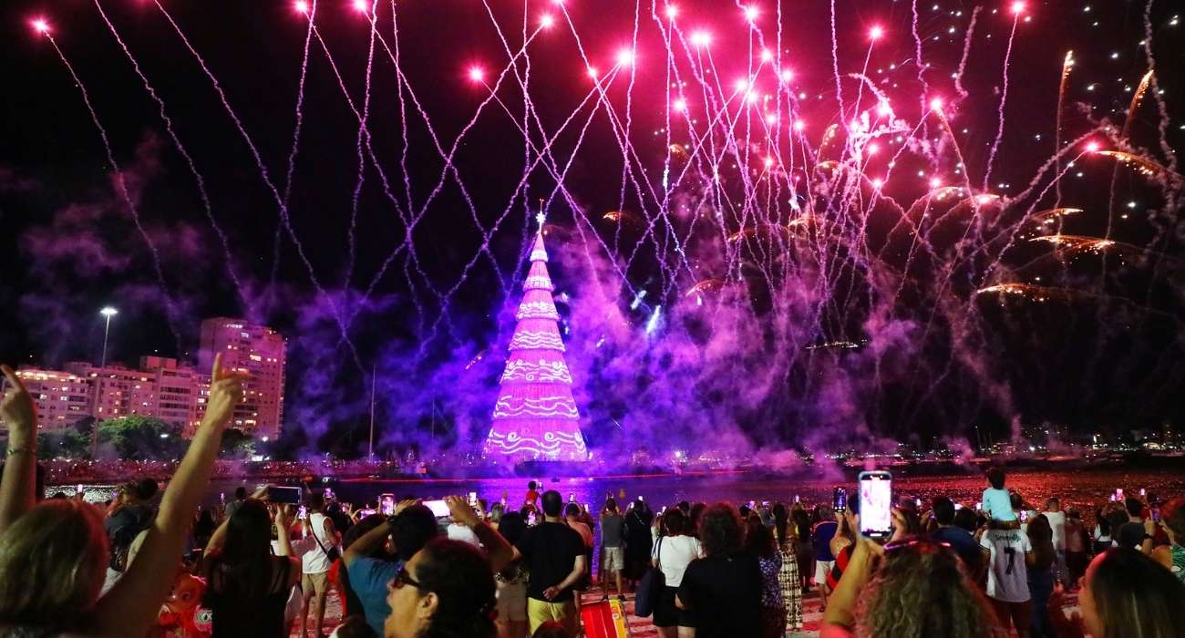 O Natal do Rio, na Enseada de Botafogo, transformou a orla em um centro de cultura e celebração. A árvore flutuante de 80 metros, com 2,3 milhões de luzes de LED, domina o cenário e reforça a novíssima tradição da cidade.