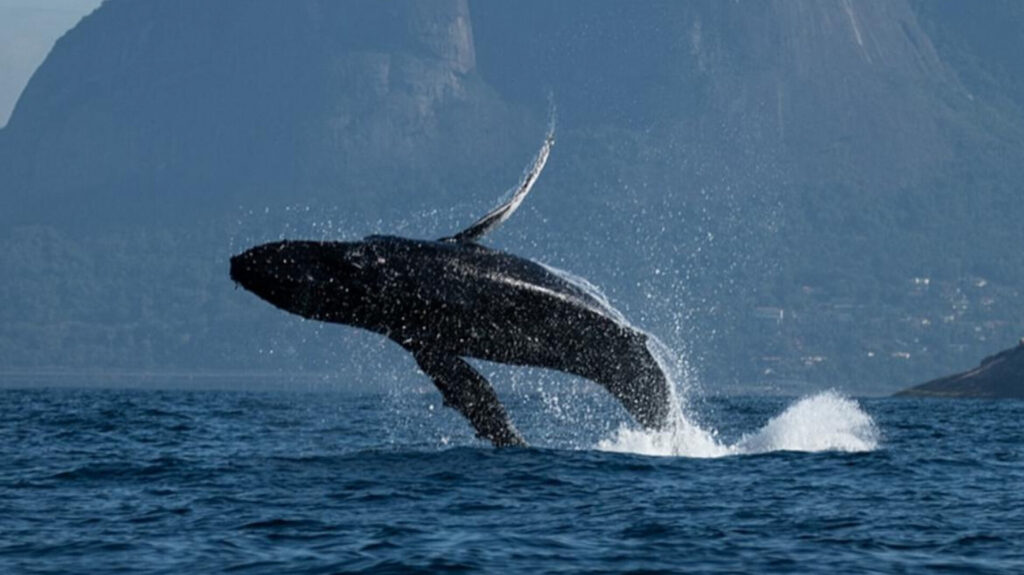 Baleia salta no mar do Rio e fotógrafo registra clique raro nas Ilhas Cagarras