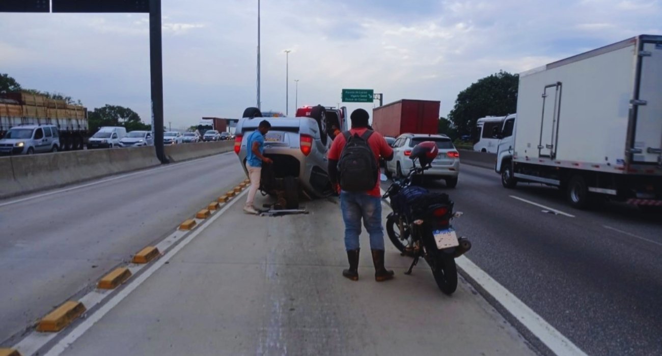 Segundo testemunhas, o capotamento ocorreu após uma colisão entre o carro e um caminhão. Com o impacto, o veículo virou de lado, bloqueando parte da pista e provocando lentidão no trânsito desde as primeiras horas da manhã.