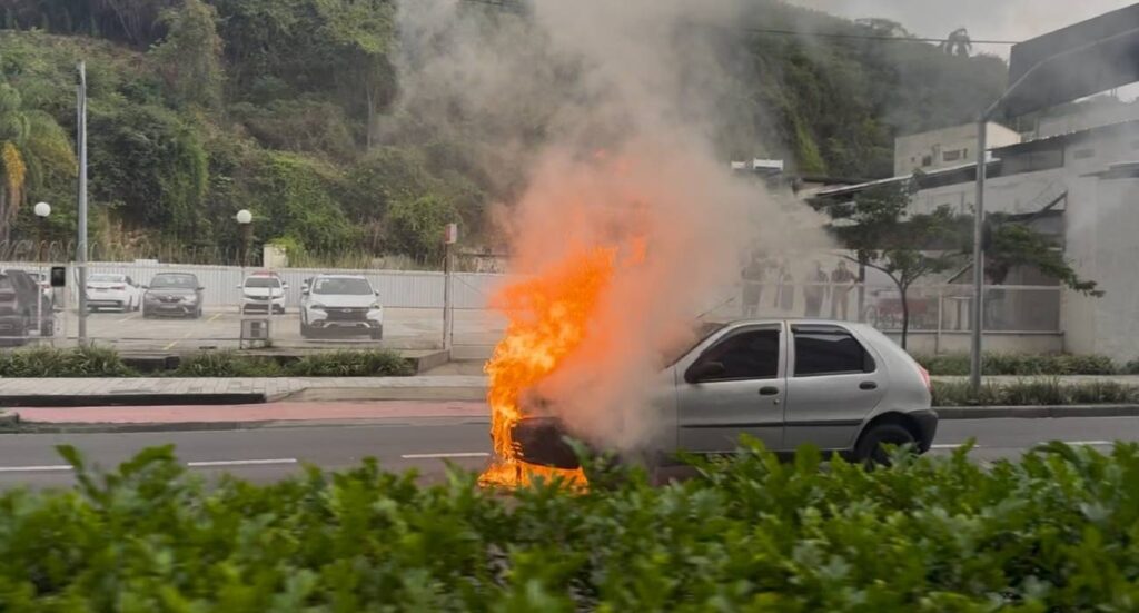 Um carro pegou fogo na Avenida Marquês do Paraná, em Niterói, no início da tarde desta quinta-feira (9). O veículo, um Fiat Palio prata, foi rapidamente tomado pelas chamas, chamando a atenção de pedestres e motoristas que passavam pelo local. (Vídeo no final da matéria)