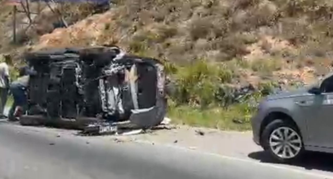 O impacto deixou a parte dianteira do automóvel bastante danificada, segundo imagens que circulam nas redes sociais. Em vídeo, um grupo de pessoas aparece reunido ao redor do carro tombado.