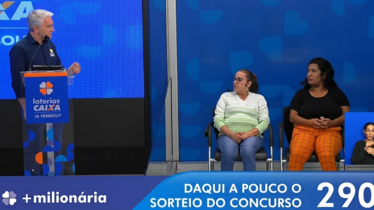 Em seguida, o apresentador anunciou o início dos procedimentos para o sorteio da +Milionária, confirmando a premiação acumulada em R$ 167 milhões. Pereira Jr também apresentou as auditoras representantes do público, afirmando que elas “seguiam atentas” para fiscalizar e validar cada procedimento do sorteio.