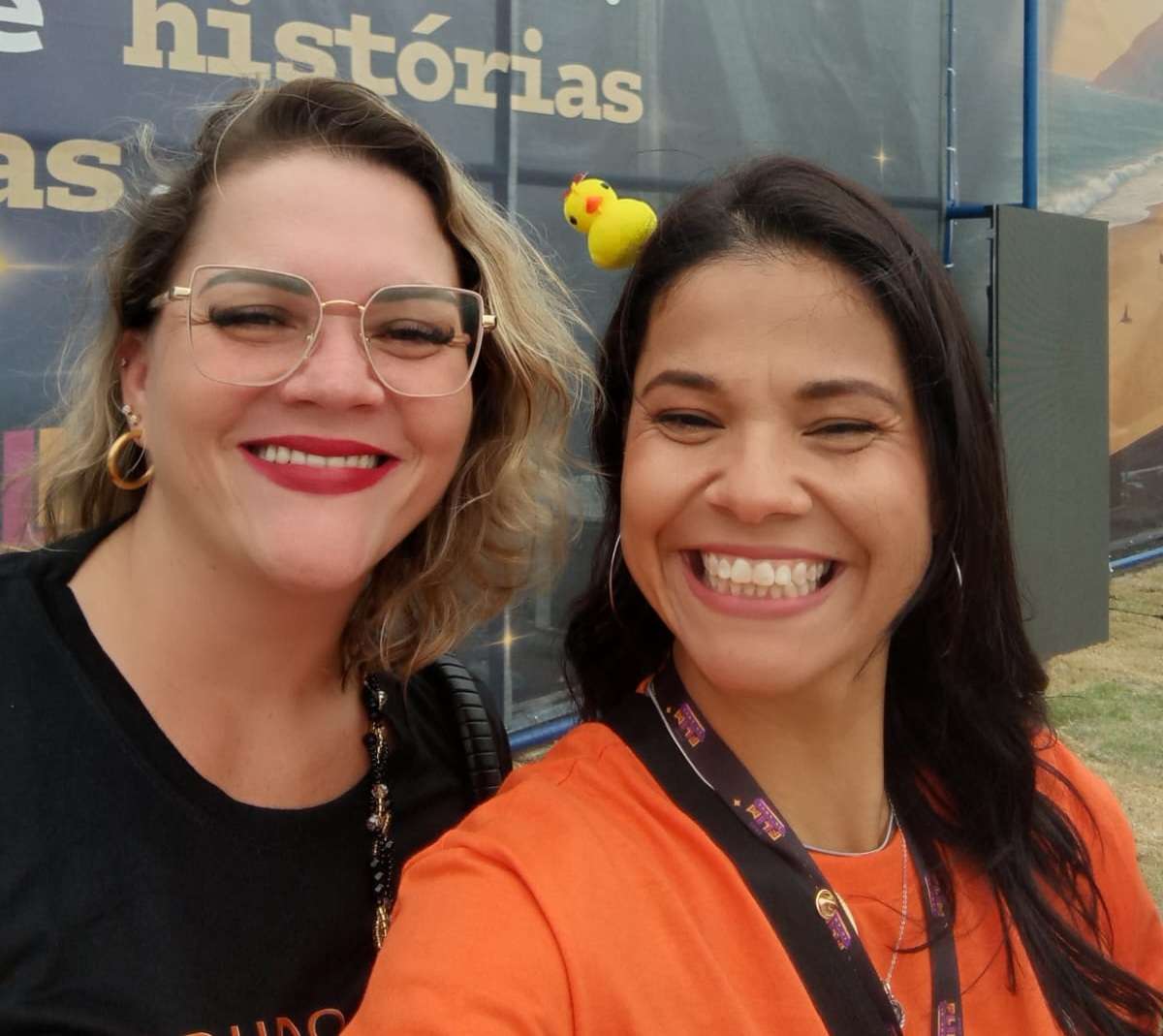 As escritoras Roberta de Souza (esquerda) e Monique Santos estão na organização do concurso. Foto: Divulgação.