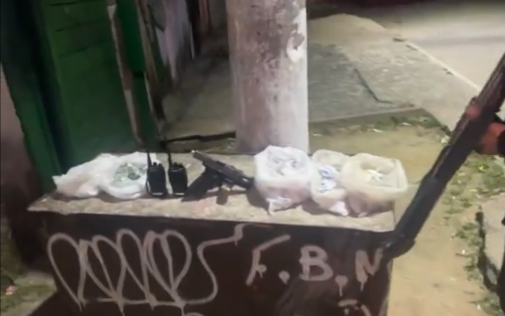 Durante a abordagem, os agentes apreenderam com os criminosos uma pistola, munições e dois rádios de comunicação, utilizados para facilitar o tráfico de drogas na região.