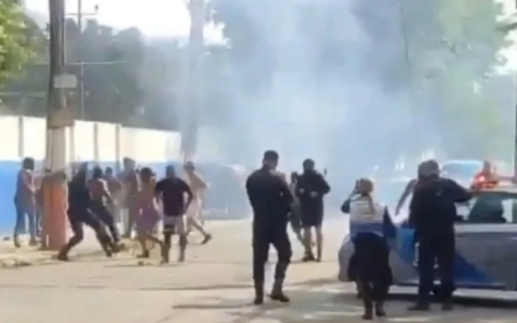 Um vídeo que circula nas redes sociais mostra agentes usando cassetetes e até mesmo apontando armas para dispersar a multidão.