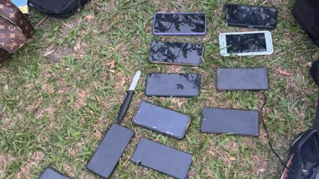No local, foi confirmado que três celulares apreendidos estavam bloqueados por restrição de segurança devido a roubo ou furto. Os dois jovens permaneceram presos, e o adolescente foi apreendido.