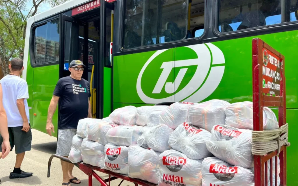 A ação foi promovida pelo sindicato Rio Ônibus em parceria com o movimento Ação da Cidadania, responsável pela campanha Natal Sem Fome. Ao todo, foram beneficiadas 39 instituições apoiadas pela empresa.