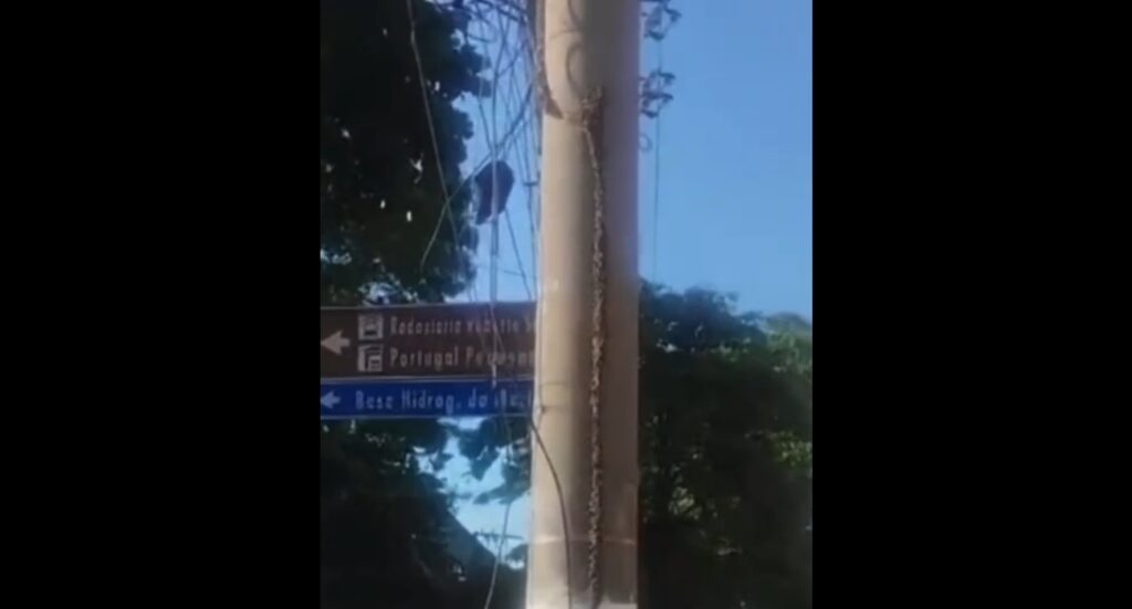 Um enxame de abelhas ocupa um poste e ameaça a segurança de pedestres na rua Visconde de Sepetiba, no Centro de Niterói, no trecho próximo ao numeral 51.
