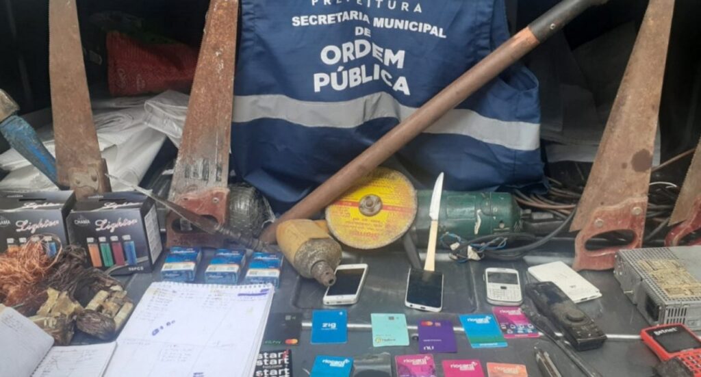 Durante a fiscalização, a equipe da Secretaria Municipal de Ordem Pública (Seop) apreendeu cartões de crédito, três celulares, ferramentas, pequena quantidade de cobre, uma maquininha de pagamentos e até uma central clandestina de monitoramento. Todo o material seguiu para a 20ª DP (Vila Isabel).