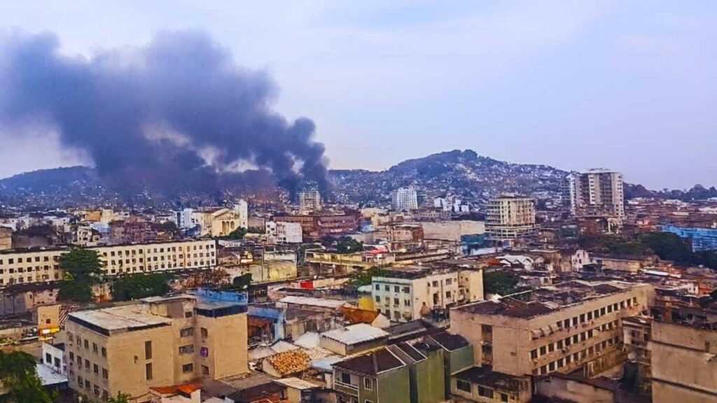 Fumaça preta cobre o céu do Rio de Janeiro, sobre a comunidade do Alemão e Penha, em meio à Operação Contenção | Reprodução
