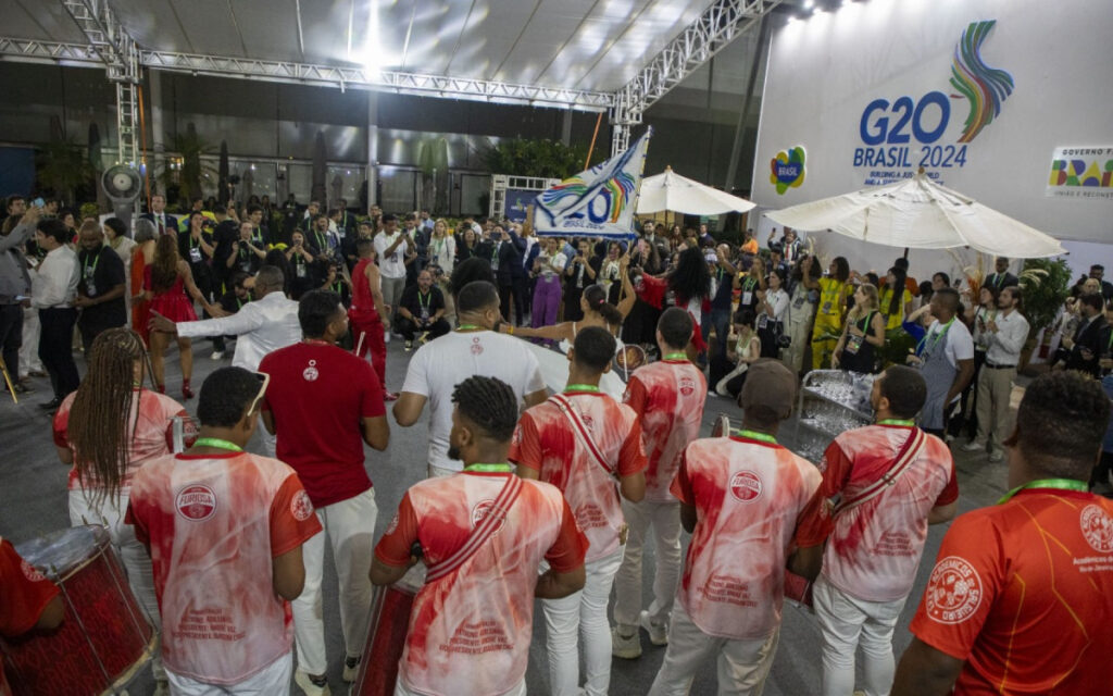 O GRES Acadêmicos do Salgueiro representou a cultura brasileira em uma apresentação especial no Museu de Arte Moderna, no Aterro do Flamengo, Zona Sul do Rio de Janeiro. A performance aconteceu na noite desta segunda-feira (18) e integrou a programação oficial da reunião de cúpula do G20, que segue até terça-feira (19).