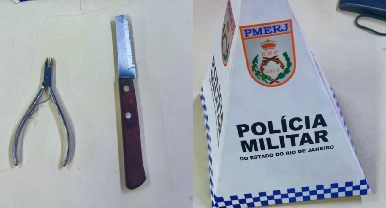 Durante a revista, os agentes apreenderam uma faca e um alicate de unha com o suspeito.