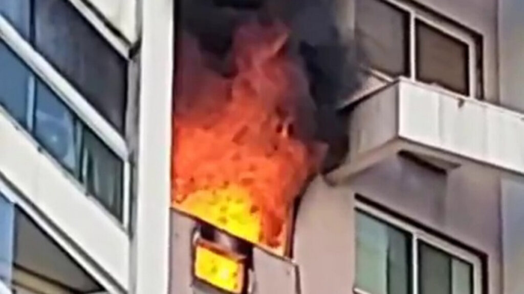 Labaredas e fumaça preta saem pela janela de apartamento na Barra Olímpica | Reprodução
