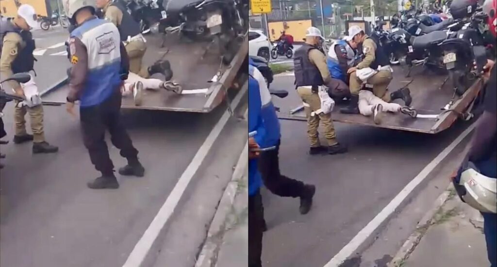 Imagens do ocorrido foram amplamente divulgadas nas redes sociais. Elas mostram o exato momento em que o suspeito tenta ligar a moto sobre o reboque.