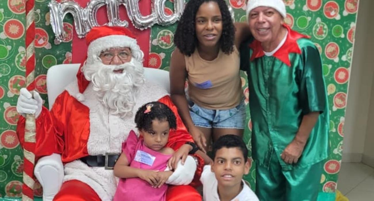 As crianças internadas pelo Núcleo de Atenção Integrada ao Recém-Nascido de Risco (NAIRR) participaram da ação festiva e celebraram a chegada do Bom Velhinho. O hospital montou decoração especial com enfeites natalinos e preparou lanches para criar um ambiente mais leve e acolhedor.
