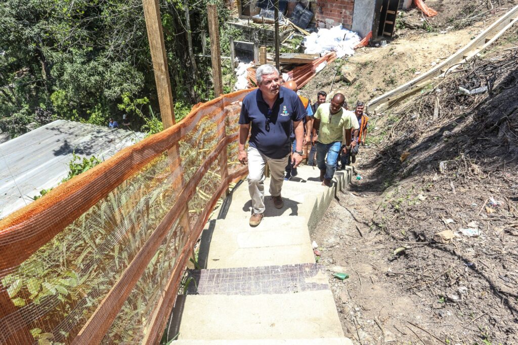 “É fundamental acompanhar o andamento dessas obras, pois a cidade tem mais de 500 frentes em execução. Esta, em particular, é de extrema importância, devido à instabilidade da encosta, que colocava várias famílias em risco. A obra já avançou significativamente, e esperamos sua conclusão para março. Contudo, já é possível perceber uma melhora na proteção das famílias graças a essas intervenções”, ressalta prefeito.