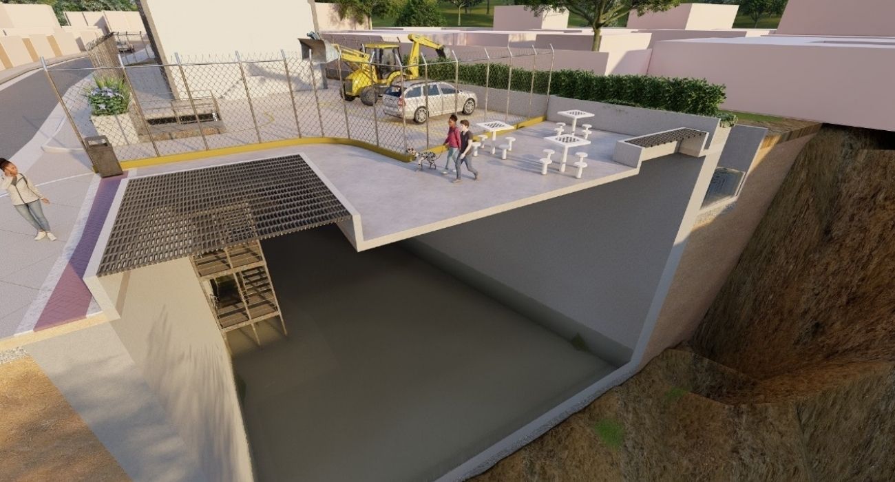 O bairro ganhará um piscinão maior que o da Praça da Bandeira. O reservatório terá capacidade de reter cerca de 20 milhões de litros de água, reduzindo o volume que chega ao Rio Piraquara em dias de chuva intensa.