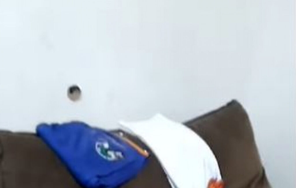 O impacto do tiro causou um buraco na parede, evidenciando a gravidade do confronto.