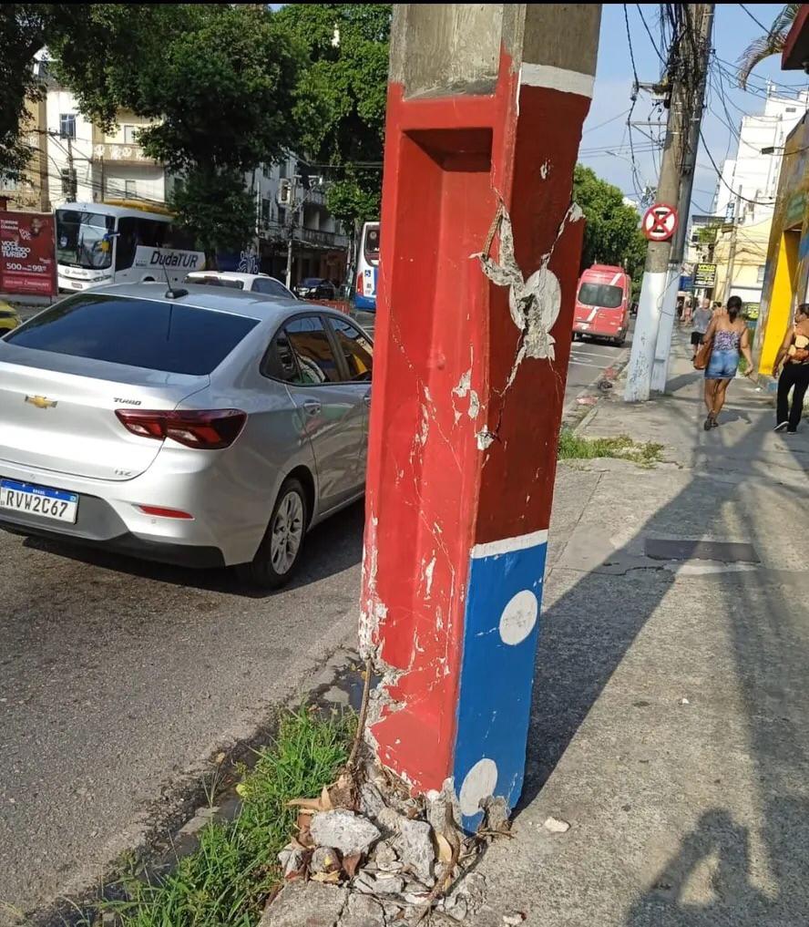 É só andar pela cidade, que é possível ver alguns postes com danos preocupantes nas estruturas, locais como, Centro, Fonseca e Barreto, sofrem mais.