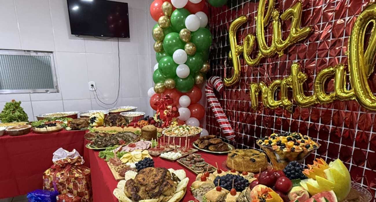 O cardápio contou com itens tradicionais das ceias natalinas. Entre os pratos servidos estavam aves assadas, farofa, macarronese e empadão, além de sobremesas como pudim e bolos. A proposta foi levar o espírito natalino para dentro dos hospitais, mesmo em um ambiente de assistência contínua.