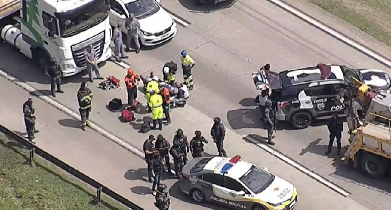 O veículo seguia no sentido Rodovia Presidente Dutra e Sistema Anchieta-Imigrantes, quando foi usado pelos criminosos para bloquear totalmente a via. A situação mobilizou equipes do Policiamento Rodoviário, do GATE e do helicóptero Águia, que isolaram a área por suspeita de bomba.