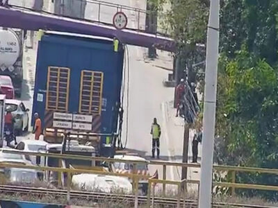 Rio de Janeiro - Capital Carreta fica presa em passarela na Avenida Brasil e causa retenções em Benfica Uma carreta presa na passarela 5 da Avenida Brasil, em Benfica, provocou engarrafamento na Zona ...
