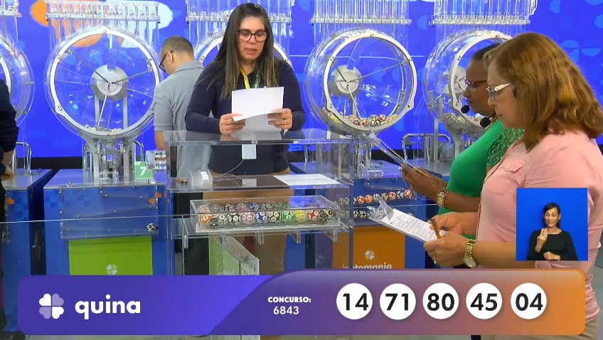 Nenhuma aposta acertou as seis dezenas do sorteio do concurso 6843 da Quinacom resultado apurado na noite desta sexta-feira (03). O evento aconteceu, como de costume, no Espaço da Sorte, em São Paulo, às 20h.