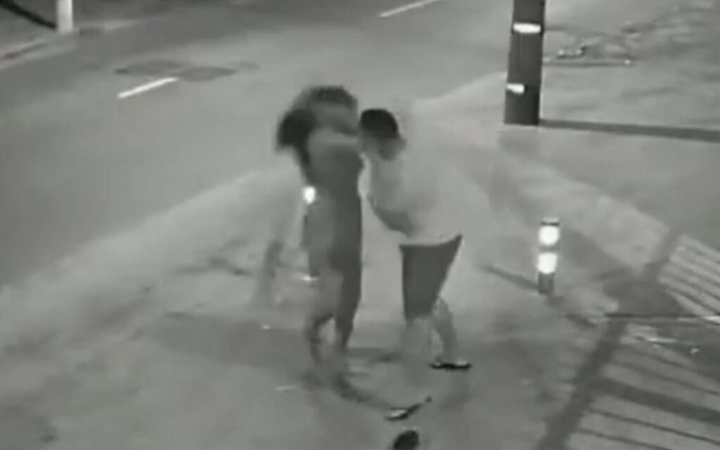 As imagens exibem o agressor e a mulher saindo de um portão, quando ele desfere um soco que a derruba na calçada. Em seguida, ele a puxa pelo cabelo e acerta outro golpe no rosto, causando nova queda. Mesmo no chão, a vítima é atingida por chutes.